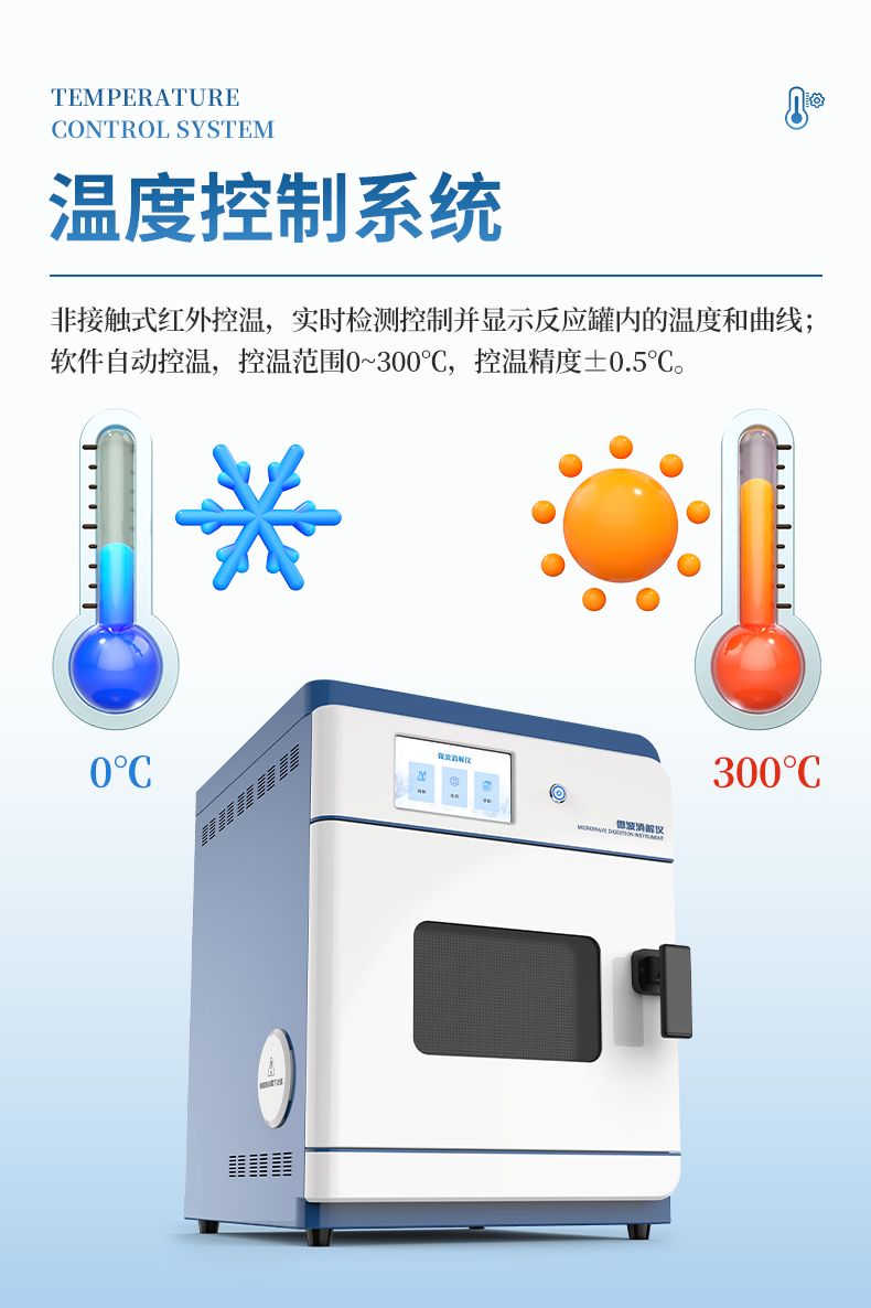 溫度控制系統(tǒng):非接觸式紅外控溫,實(shí)時(shí)檢測控制并顯示微波消解反應(yīng)罐內(nèi)的溫度和曲線。