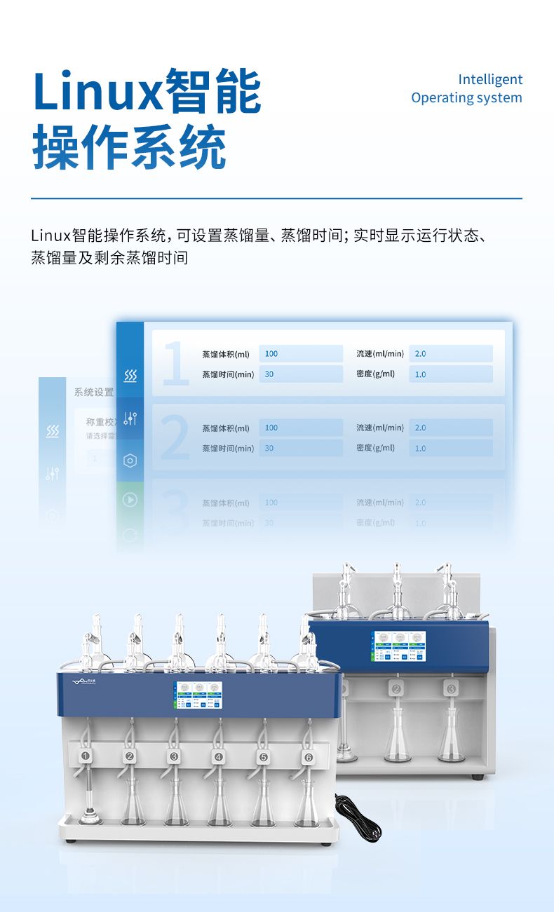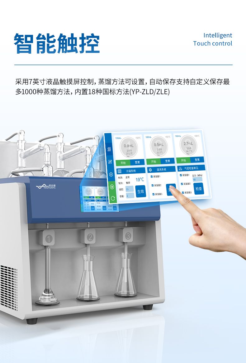 3.智能觸控:7寸液晶觸摸屏,支持自定義保存最多1000種蒸餾方法,內(nèi)置18種國標(biāo)方法。