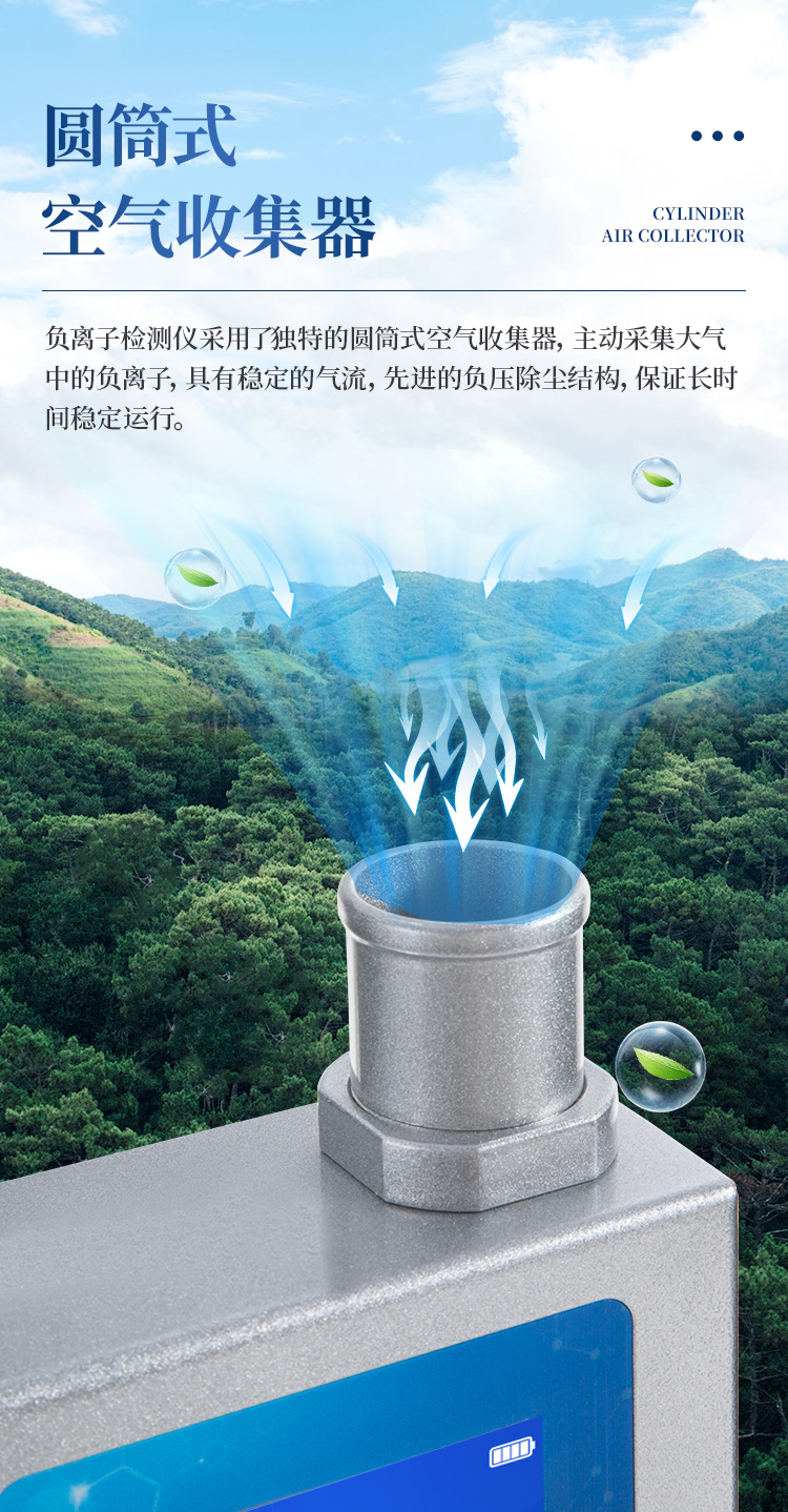 測量方法:圓筒電容結構負(氧)離子捕獲機制;
