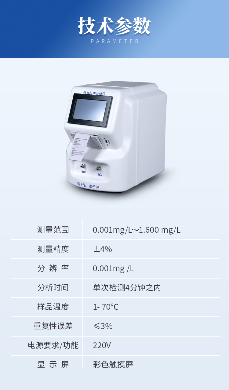 3.針對制藥用水(TOC含量在1600ppb以下)總有機碳含量的檢測設計,進行檢測。