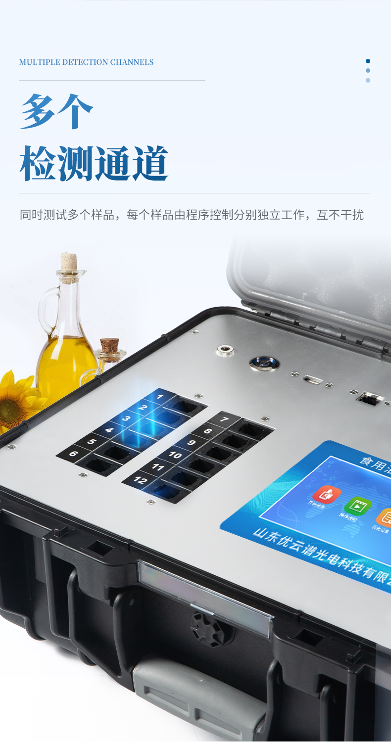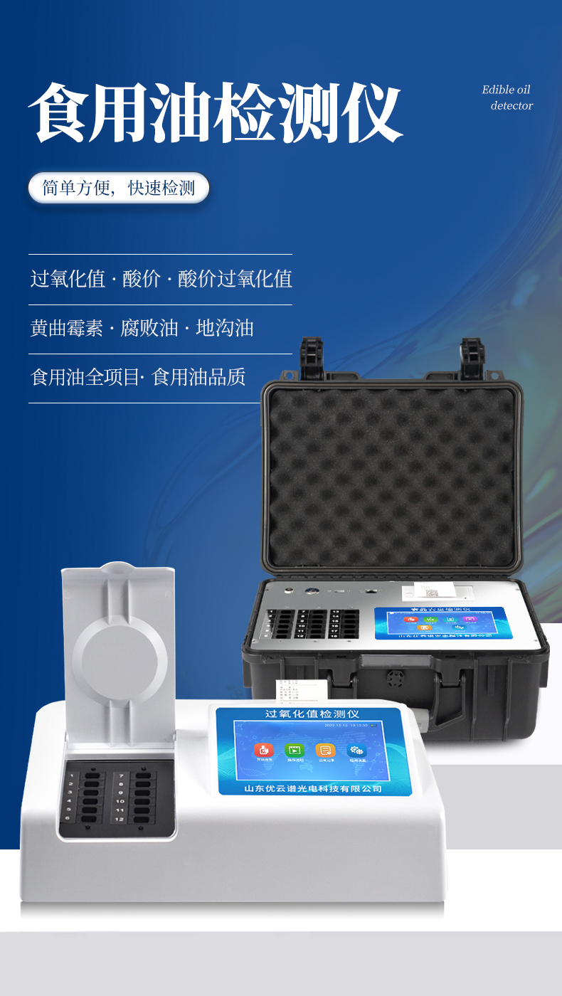 食用油安全檢測檢測儀為集成化油品快速檢測分析設備,能夠快速檢測食用植物油、食用豬油、花生油、葵花油、米糠油、食品、肉制品中的酸價、過氧化值、黃曲霉毒素,苯并芘,辣椒素等含量;通過檢測可確定植物油是否符合國家標準或是否為酸敗油、劣質油、地溝油等。儀器預留其他項目檢測程序和端口,根據日后需求可方便的自主增加檢測項目。日后可升級為檢測水產品、面制品的綜合類型儀器。