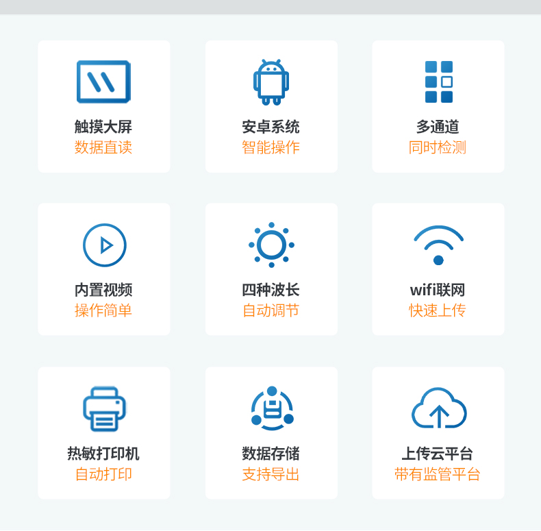 1、安卓智能操作系統,采用更加高效和人性化操作,儀器具有網線連接、wifi聯網上傳、GPRS無線遠傳功能,快速上傳數據。