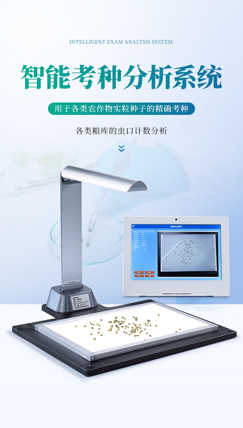 用于各類農作物實粒種子(谷粒、玉米、小麥、油菜籽等)的精確考種,各類糧庫的蟲口計數分析。可兼做表面光滑的昆蟲計數或蟲卵計數(如:米象、蚜蟲、蠶卵、魚籽等),以及被當作種子凈度工作臺用于種子凈度檢驗。