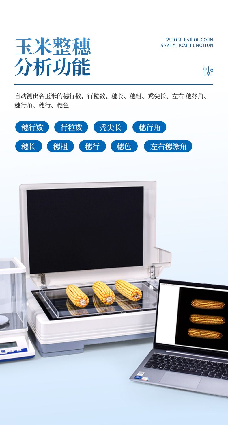 3、玉米截面分析功能:玉米的穗粗、穗直徑、軸粗、軸直徑、穗粒數、粒長、粒寬、粒周長、粒面積,一次性最少可測35個截面。