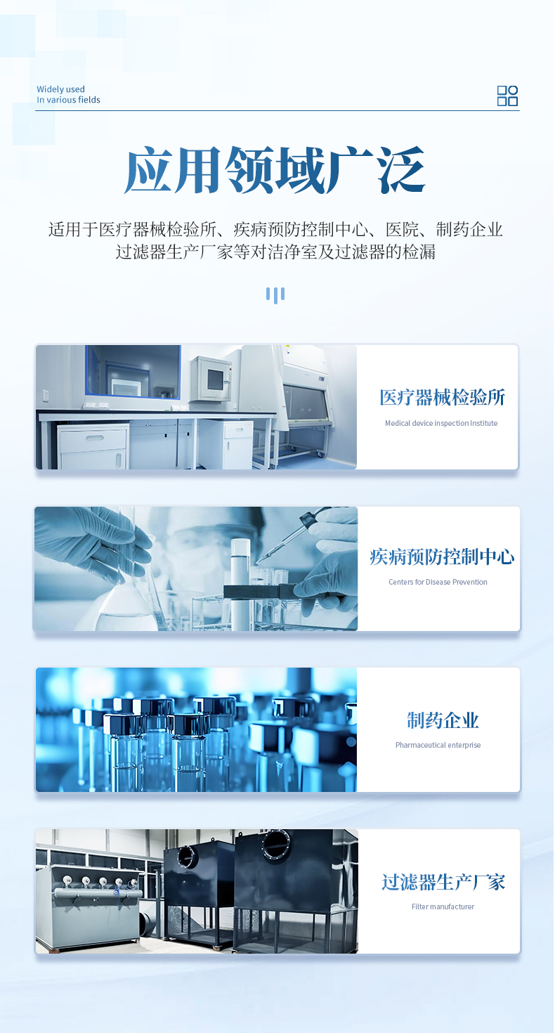 氣溶膠發(fā)生器是利用Laskin噴嘴產(chǎn)生DOP氣溶膠的儀器,內(nèi)置調(diào)節(jié)閥可調(diào)節(jié)使用4個(gè)或10個(gè)噴嘴工作,輸出的氣溶膠濃度在1.4m3/min-56.6m3/min空氣流量下,可以達(dá)到10μg/L-100μg/L,氣溶膠性能指標(biāo)符合國(guó)家標(biāo)準(zhǔn),適用于醫(yī)療器械檢驗(yàn)所、疾病預(yù)防控制中心、醫(yī)院、制藥企業(yè)、過(guò)濾器生產(chǎn)廠家等對(duì)潔凈室及過(guò)濾器的檢漏。