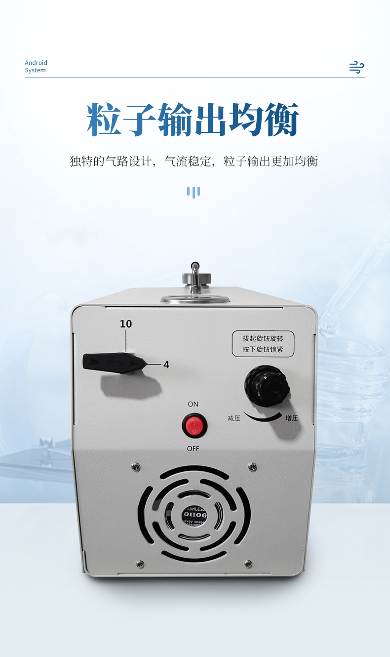 獨(dú)特的氣路設(shè)計(jì),氣流穩(wěn)定,粒子輸出更加均衡;