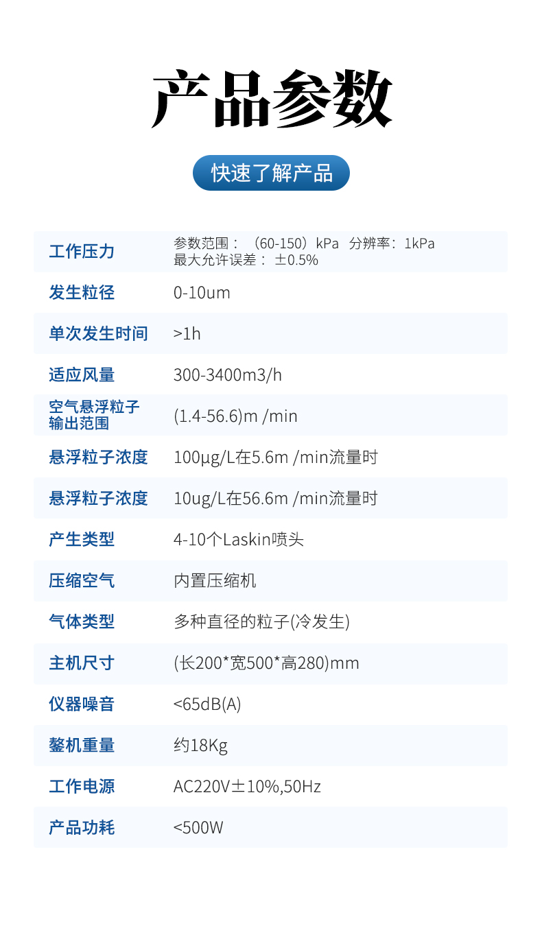可產(chǎn)生多種類(lèi)型氣溶膠,如DOP、DOS、PAO等;