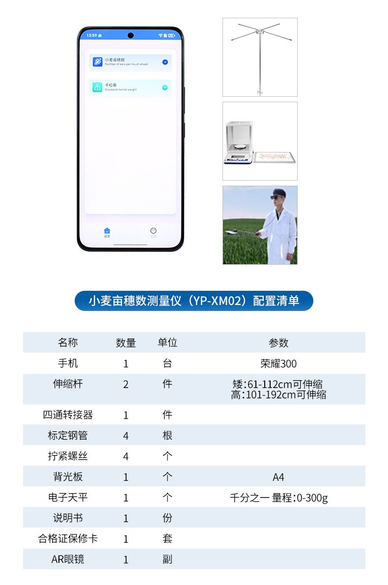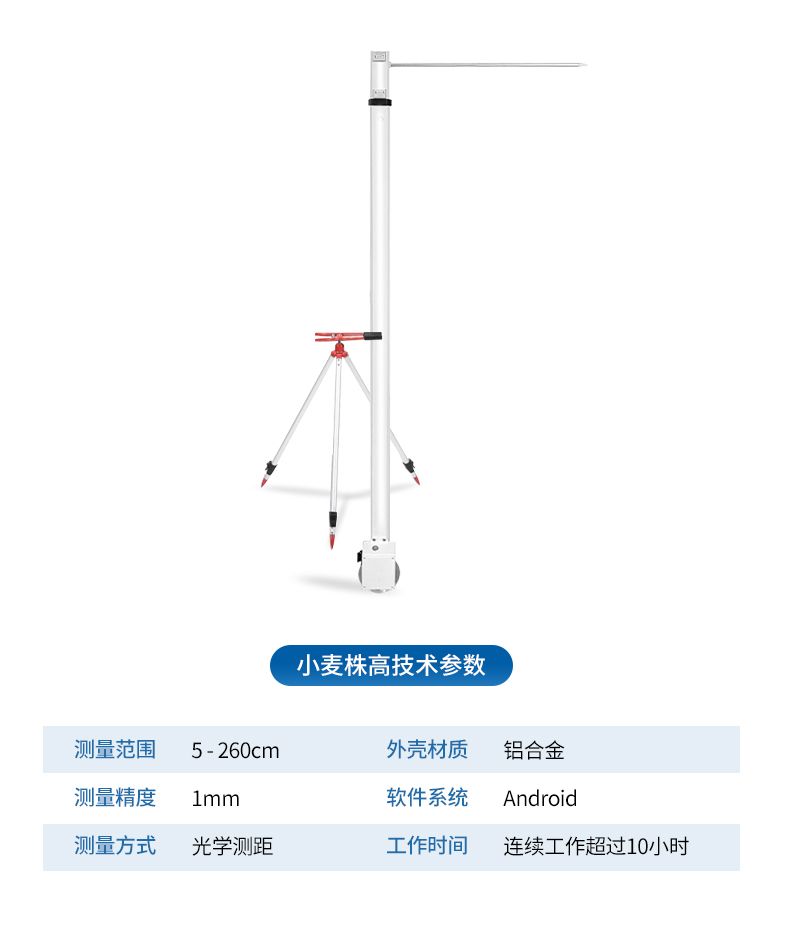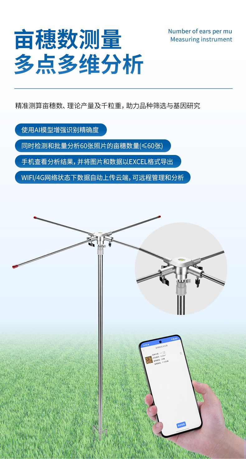 小麥畝穗數測量主要用于快速、準確地測量單位面積內的小麥穗數。該設備結合圖像識別技術、人工智能算法與高分辨率攝像系統,通過對實地拍攝的小麥圖像進行分析,自動識別并計數麥穗數量,極大地提高了測量效率與準確性。