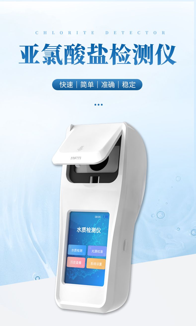 亞氯酸鹽是投放二氧化氯消毒劑后的副產(chǎn)物,超標(biāo)對人有致癌作用。便攜式亞氯酸鹽檢測儀器配合快速顯色檢測試劑,可“快速、簡單、準(zhǔn)確、穩(wěn)定”進(jìn)行測量,擁有精美的外觀造型,簡單的操作界面,準(zhǔn)確的檢測系統(tǒng),幫助用戶獲得精細(xì)的數(shù)據(jù),可更準(zhǔn)確、有效的分析水體狀況。
